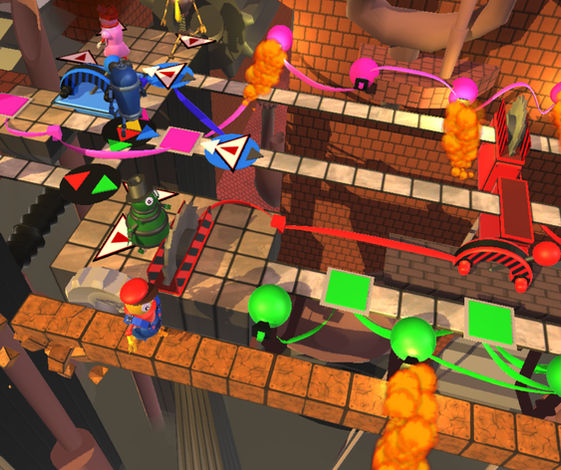 Robotraps is a VR puzzle game where you have to get the robots Alice, Bob, Clark, Dennis and Ernest to their workplace. You have to enable and disable different levers to solve the puzzles.